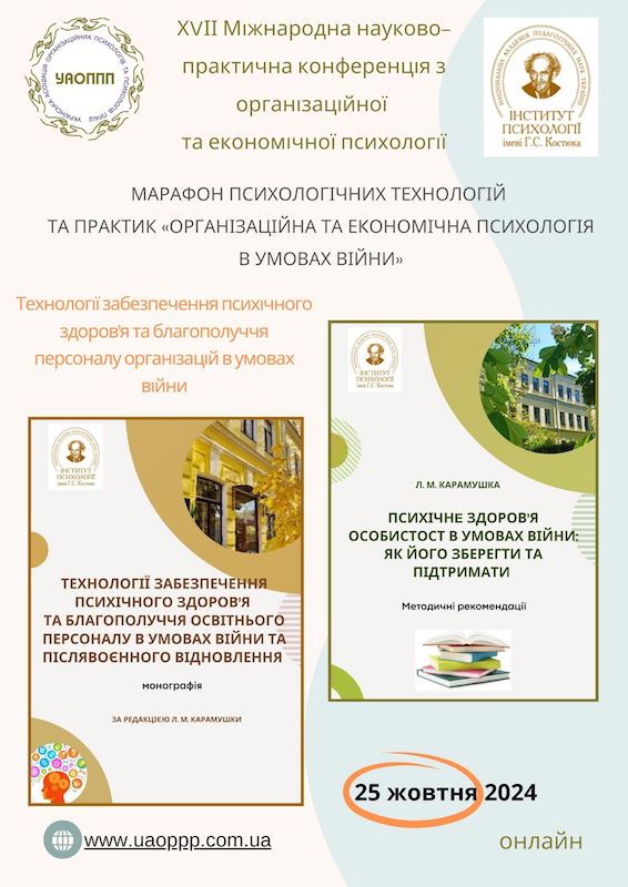 25 жовтня 2024 року відбулася ХVІІ Міжнародна науково-практична конференція з організаційної та економічної психології. Конференція проходила у форматі «Марафону психологічних технологій та практик «Організаційна та економічна психологія в умовах війни».